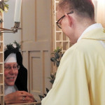 8 września, w święto Narodzenia NMP, nasza s. Maria Monika od Matki Serca Najświętszego złożyła swoje wieczyste śluby. Ceremonii przewodniczył nasz kapelan ks. Józef Lach SCJ, a obok niego przy ołtarzu stanęli o. Bernard Potępa OFM i dwaj rodacy neoprofeski ks. Krystian Bula i ks. Adam Jasiurkowski.